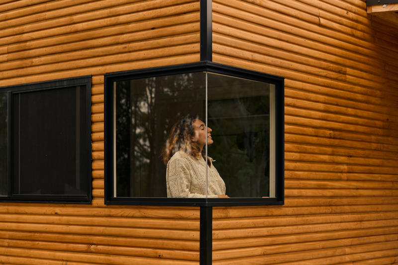 - A short walk from the cabin, nestled amongst the trees, you’ll find your own private woodfired sauna and ice bath.